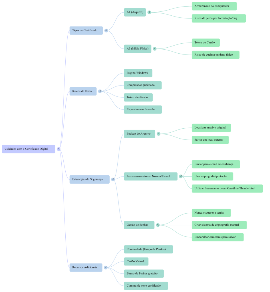 No caso do certificado digital do tipo A1, que consiste em um arquivo instalado diretamente no computador, a perda do equipamento, a corrupção do sistema operacional (especialmente do Windows) ou a queima de componentes físicos pode resultar na perda definitiva do certificado. Se não houver backup prévio, não existe mecanismo nativo que permita a recuperação do arquivo, obrigando o profissional a adquirir um novo certificado, com novo custo financeiro e perda de tempo.