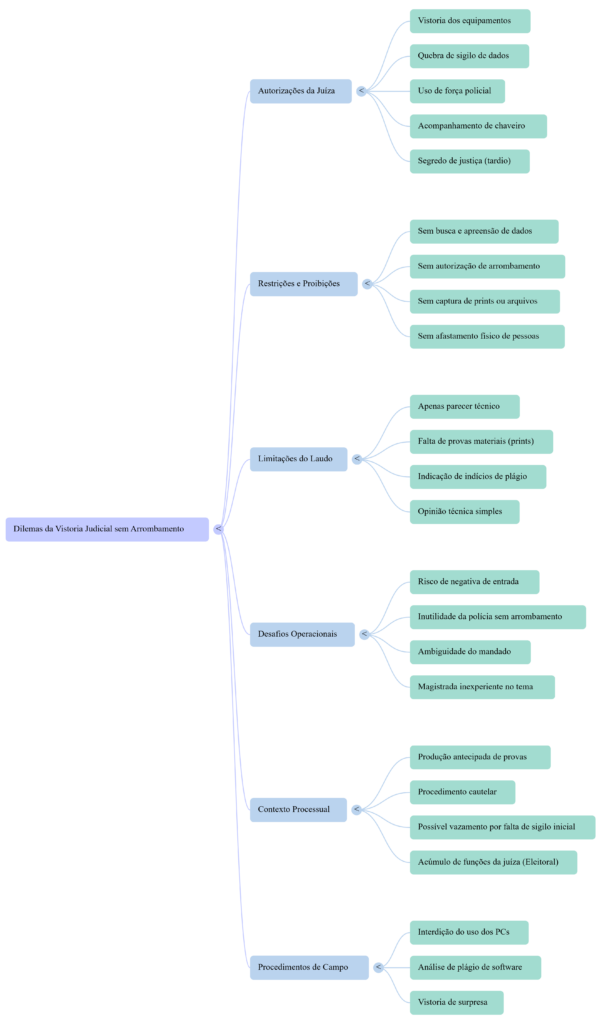Um dos pontos mais críticos do caso foi a decisão judicial que, embora provocada, limitou a diligência a uma simples vistoria, negando o pedido de busca e apreensão de dados com autorização expressa para coleta de evidências.