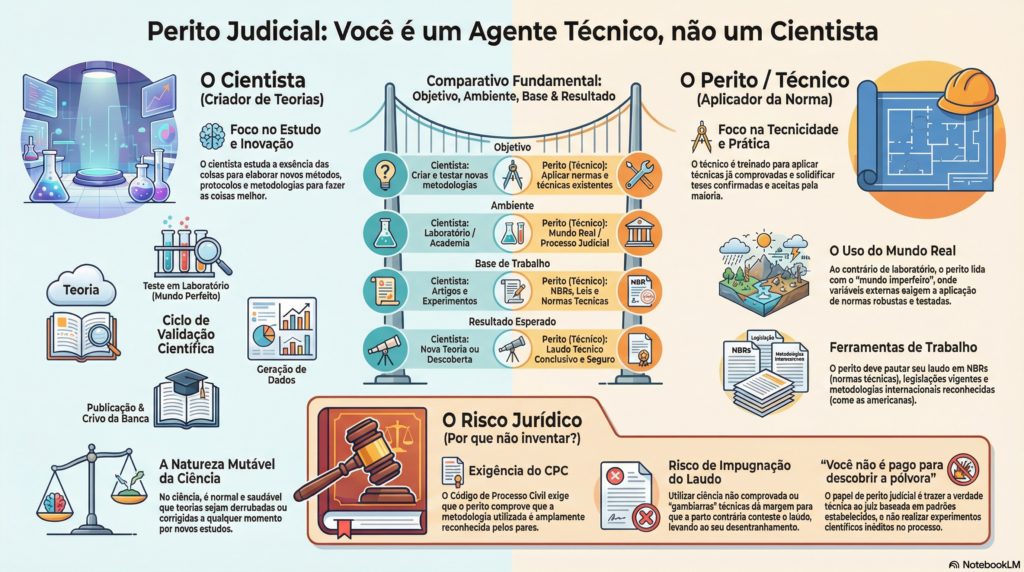 O perito judicial não é um cientista em atividade de pesquisa, mas um agente técnico do juízo, cuja missão é aplicar métodos consagrados com precisão, clareza e neutralidade.